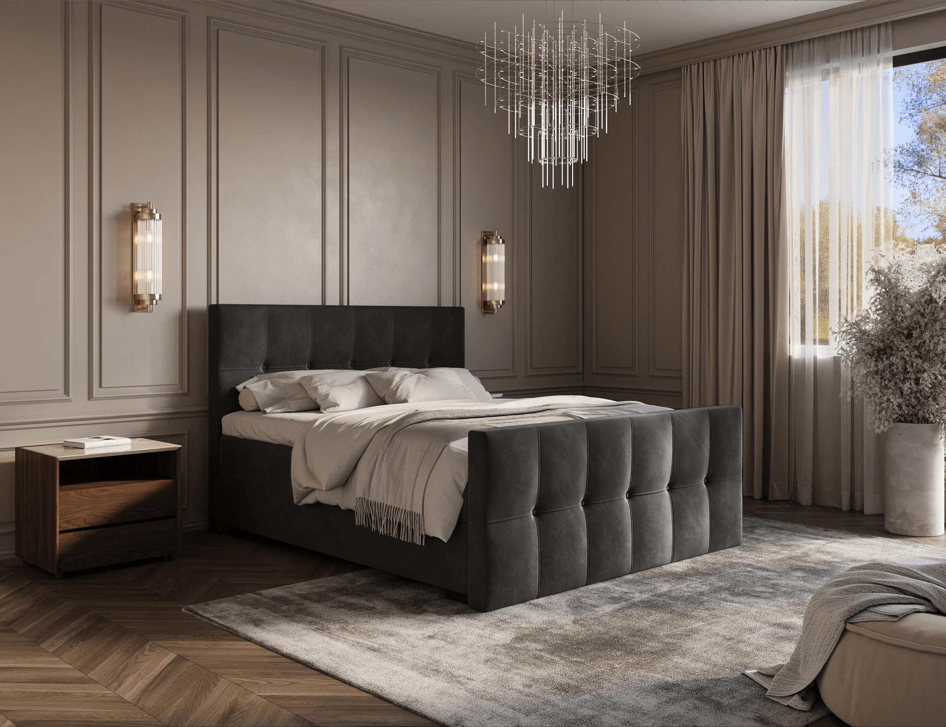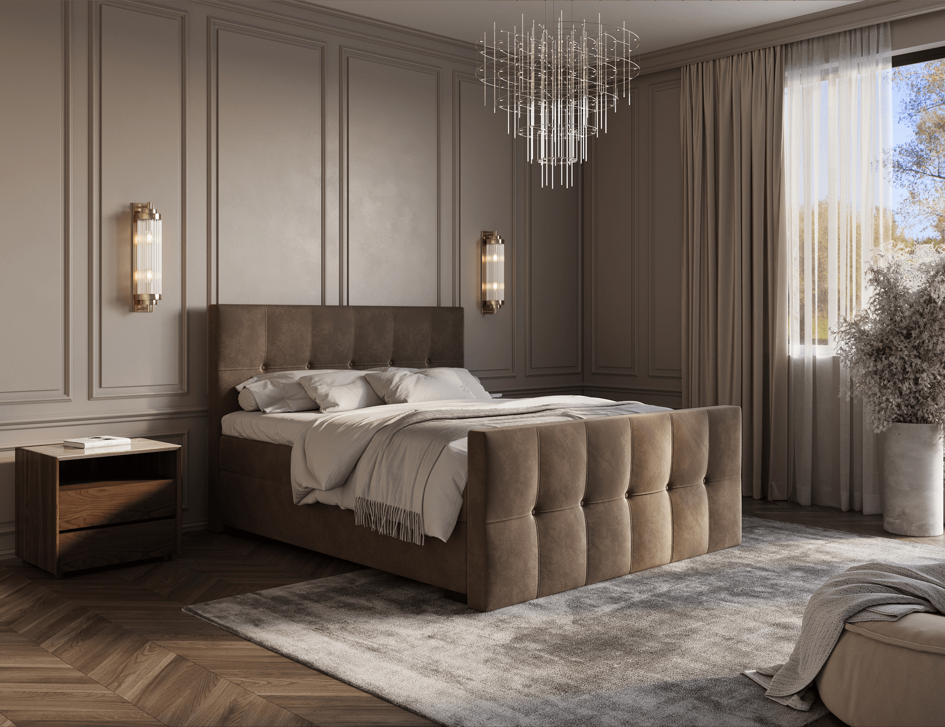 De boxspring Charlie is uitgevoerd met een stijlvol hoofdbord met subtiele knopen. Deze verfijnde details geven het ontwerp een eigentijdse en elegante uitstraling, terwijl het geheel rust en warmte brengt in de slaapkamer. De Charlie is een echte blikvanger die moeiteloos klasse en comfort combineert. Met de ruime keuze uit verschillende stoffen, onderboxen, poten en matrassen stel je deze boxspring volledig samen naar jouw persoonlijke smaak en stijl. Voor een extra luxe uitstraling kun je de Charlie aanvullen met een bijpassend voetbord met subtiele knopen, waarmee het bed één mooi geheel vormt.