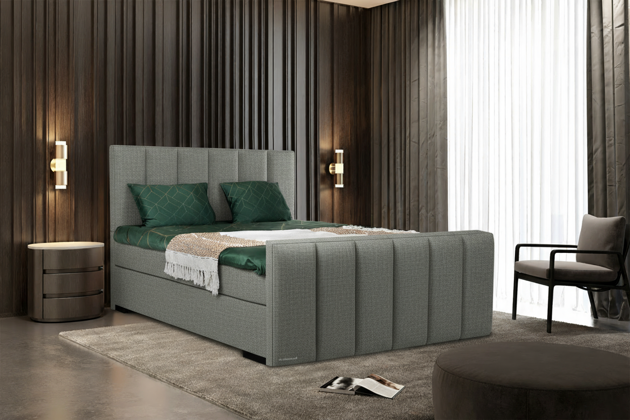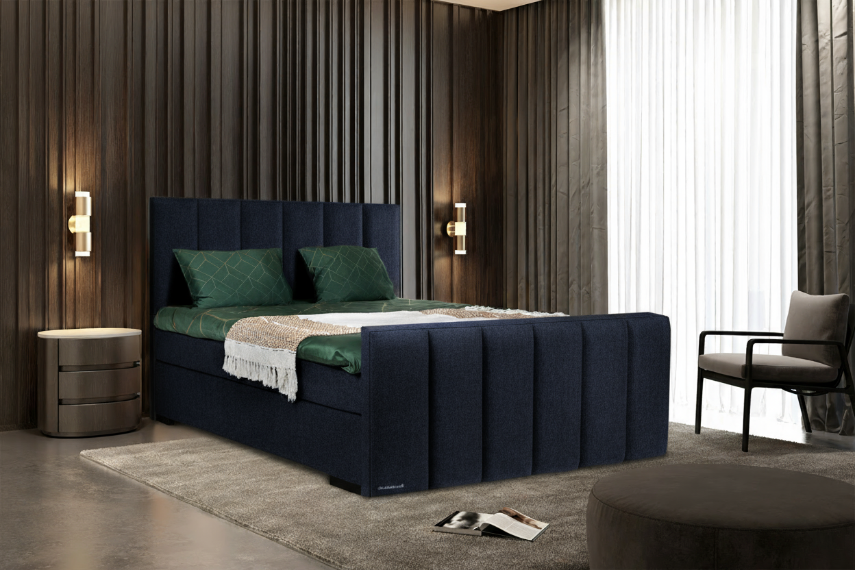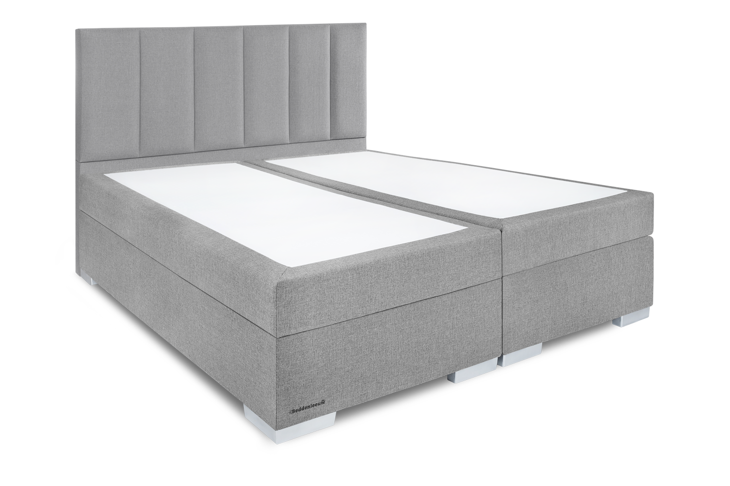 De boxspring Novia heeft een hoofdbord met zes verticale balken van 1,2 meter hoog. Het ontwerp straalt rust en luxe uit en past moeiteloos in zowel moderne als klassieke interieurs. Met keuze uit verschillende stoffen, onderboxen, poten en matrassen stel je de Novia volledig samen naar jouw persoonlijke smaak en comfort. Daarnaast kun je kiezen voor een voetbord met zes balken, dat perfect aansluit bij het hoofdbord, of een TV-lift voor extra luxe en gebruiksgemak.