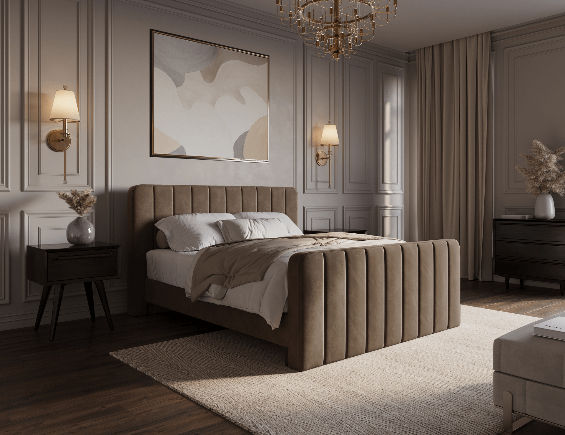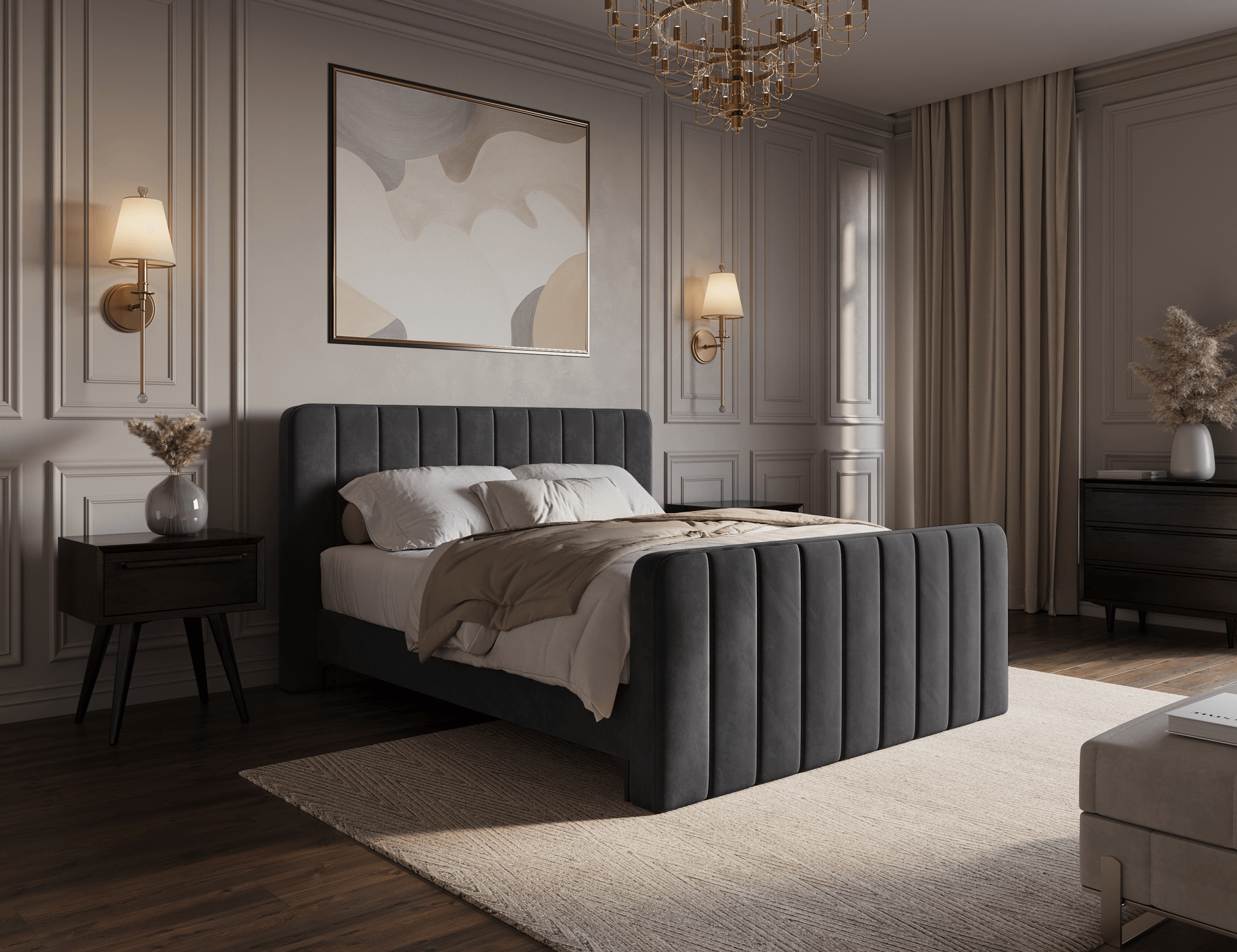 De boxspring Owen is uitgevoerd met een hoofdbord met verticale balken van 1,2 meter hoog. Het ontwerp heeft een moderne en luxe uitstraling en komt in vrijwel iedere slaapkamer perfect tot zijn recht. Met keuze uit verschillende stoffen, onderboxen, poten en matrassen stel je de Owen volledig samen naar jouw persoonlijke stijl en comfort. Voor een stijlvol geheel kun je de Owen uitbreiden met een bijpassend voetbord met verticale balken, dat perfect aansluit op het hoofdbord.