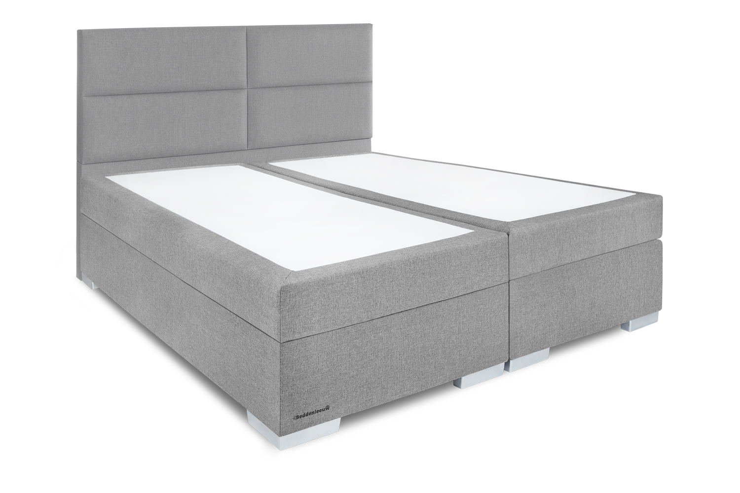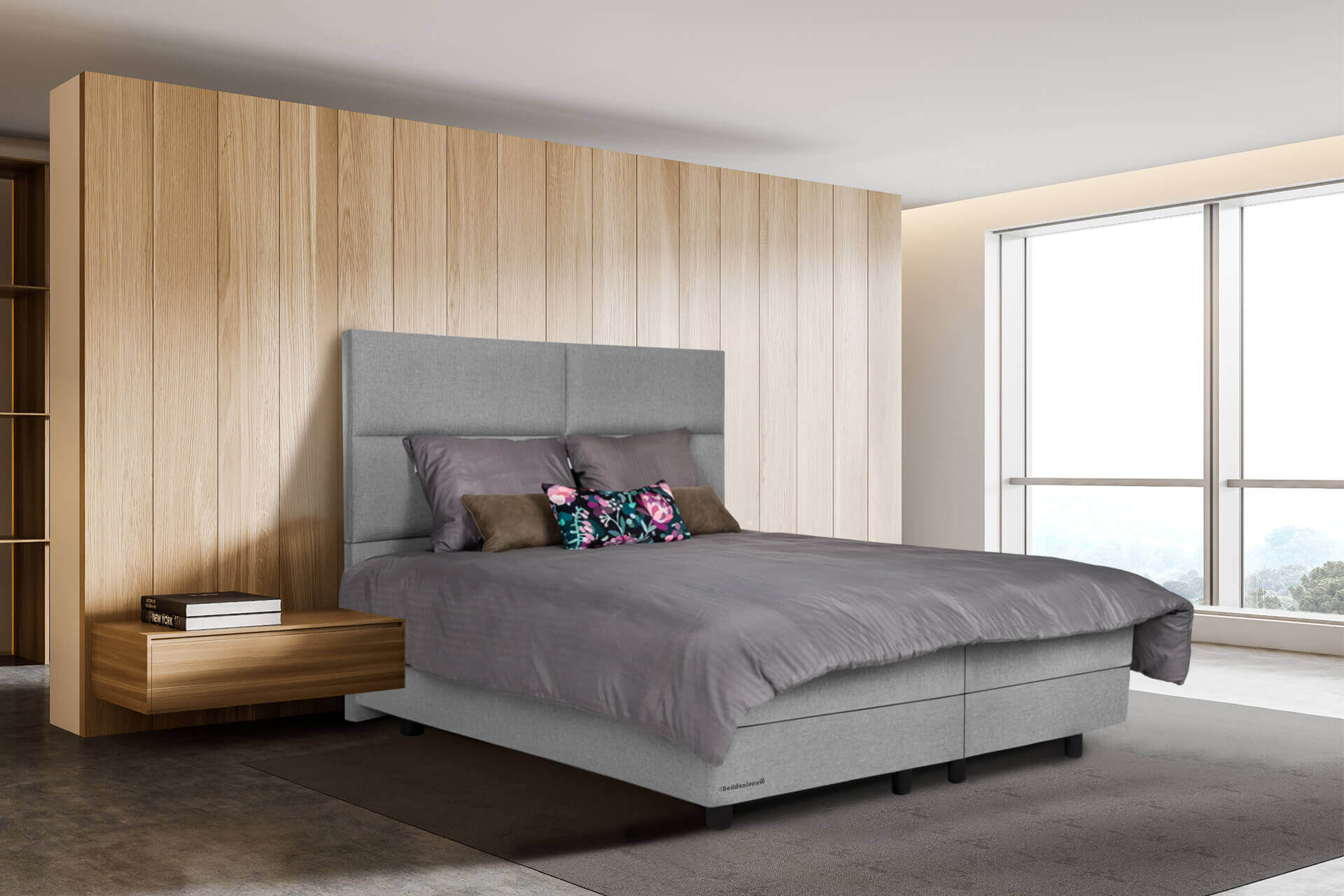De boxspring Sara is uitgevoerd met een stijlvol 4-vaks hoofdbord van 1,2 meter hoog, wat zorgt voor een moderne en karaktervolle uitstraling. De subtiele verdeling in vlakken geeft het ontwerp extra diepte en elegantie, zonder druk te ogen. Dankzij de hoogwaardige afwerking en ruime keuze aan stoffen en kleuren laat de Sara zich moeiteloos aanpassen aan elke slaapkamerstijl, van modern tot klassiek. Daarnaast is het mogelijk om de Sara uit te breiden met een TV-lift, of een bijpassend voetbord met vier vakken, waarmee het ontwerp als geheel een extra luxe en symmetrische uitstraling krijgt.